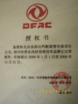 我公司獲得東風汽車零配件銷售服務有限公司代理授權